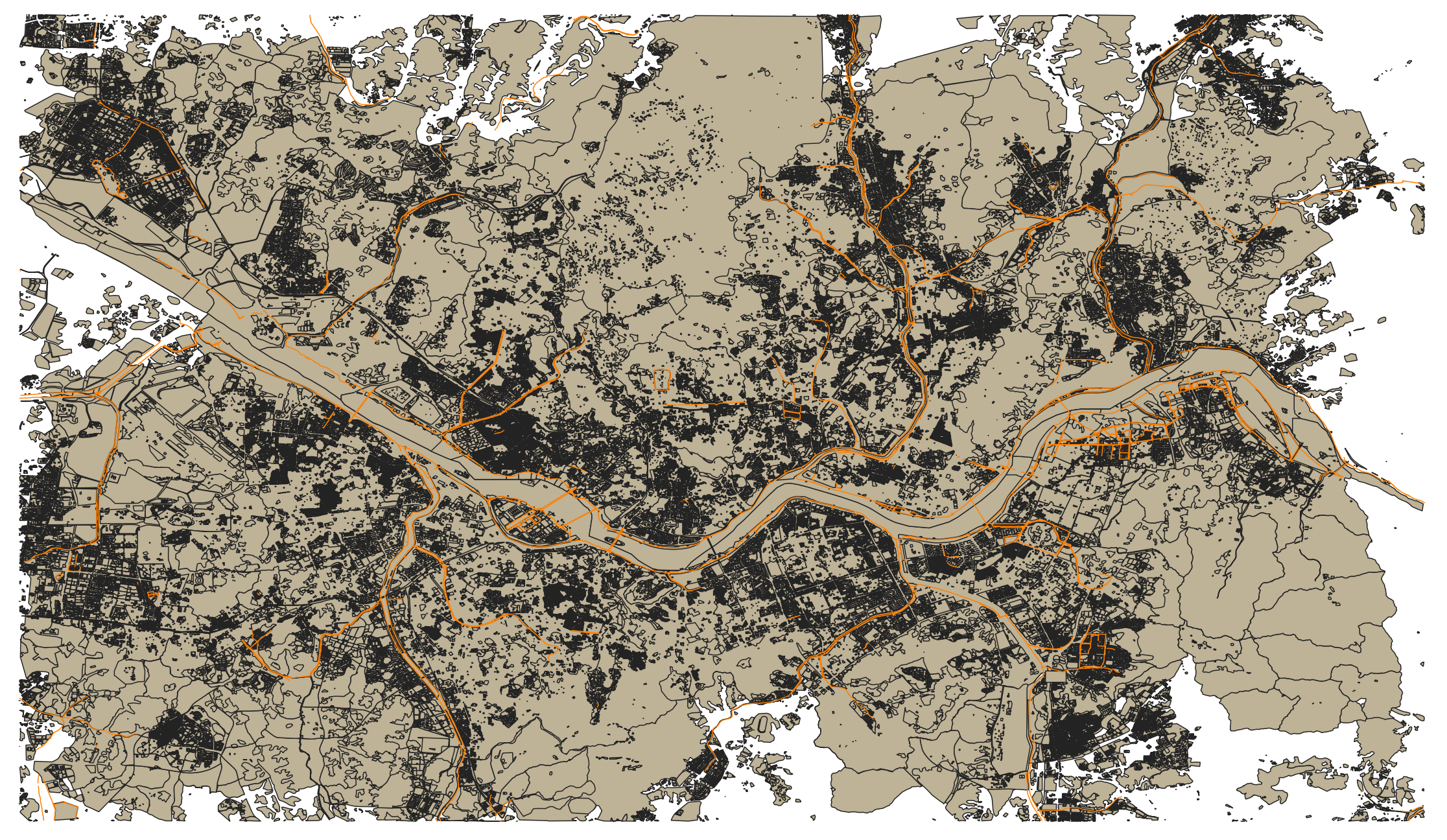 주황색으로 보이는 선은 자전거 전용 도로를 나타냅니다. 자전거 경로 우선 탐색은 자전거 전용도로가 가중치를 부여받아 경로가 계산됩니다.