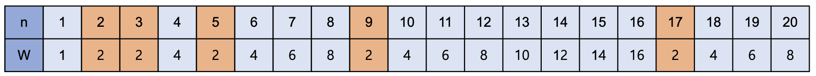 $$W(1)=1,\quad W(2^k+1)=2\\[0.75em]\text{if}\quad n=(2^k+1)+l\quad\text{then}\quad W(n)=2(l+1)\\[0.75em]\begin{align*}\therefore\quad W(n)&=2(l+1)\\&=2((n-(2^k+1))+1)\\&=2n-2^{k+1}\end{align*}$$
