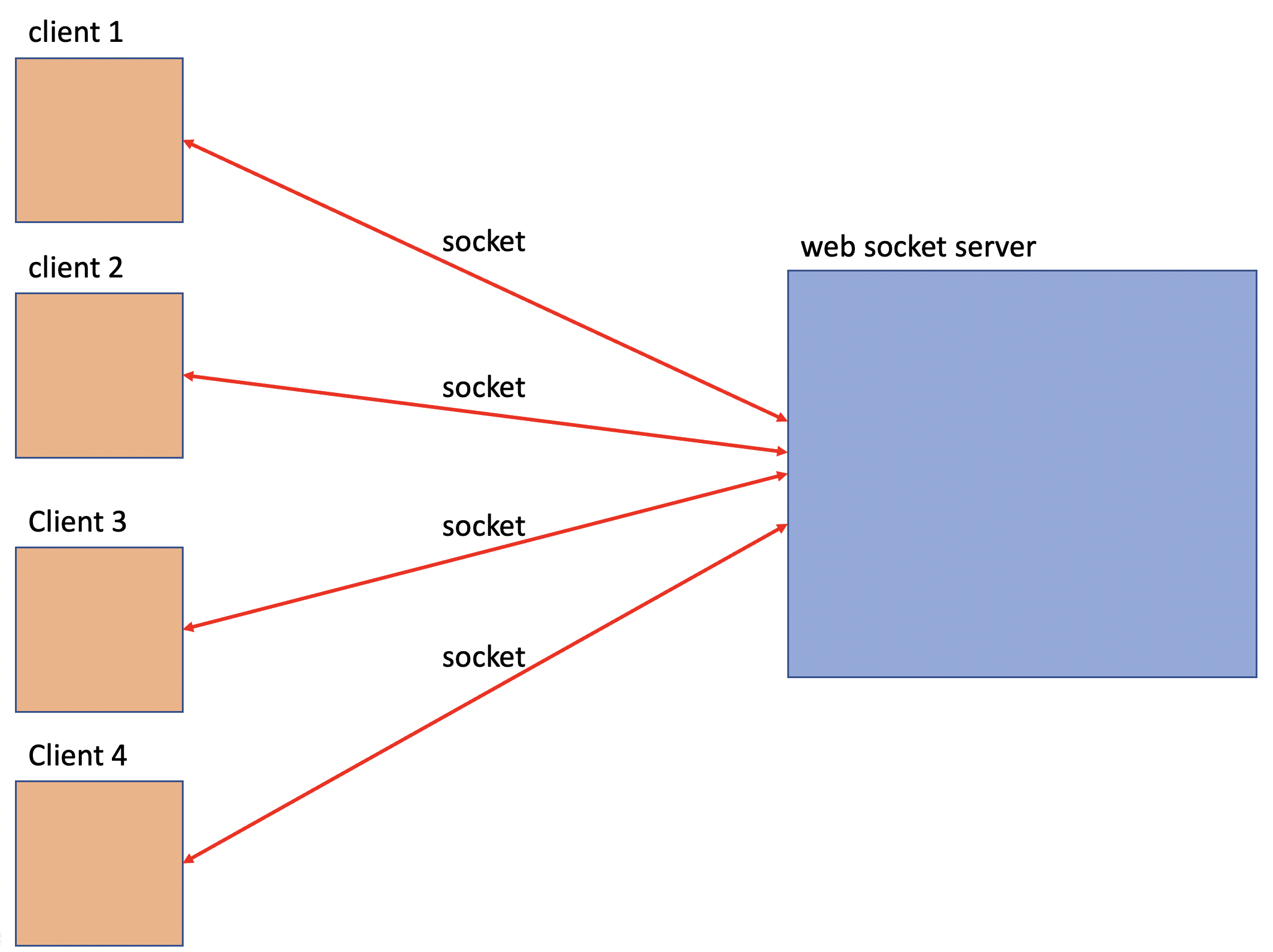 WebSocketServer의 인스턴스(이하 wss)는 하나의 포트를 갖는 서버입니다. 여기서 포트는 http포트와 공유할 수 있습니다. wss는 여러 클라이언트 혹은 다른 서버와 소켓으로 연결됩니다.