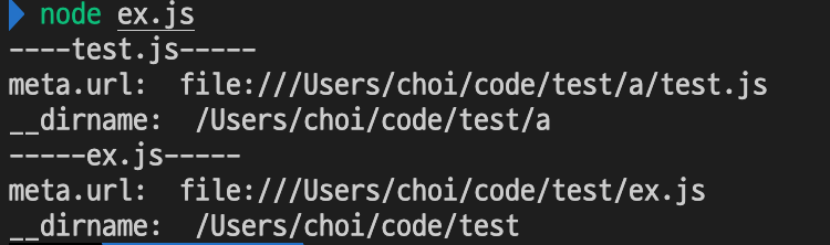 따라서 해당 파일의 경로를 사용하는 __dirname을 ES module에서 사용하고 싶다면 import.meta.url을 사용하면 된다. 하지만 import.meta.url은 basename과 file:///가 붙어나와 commonJS의 __dirname과는 차이가 있다.