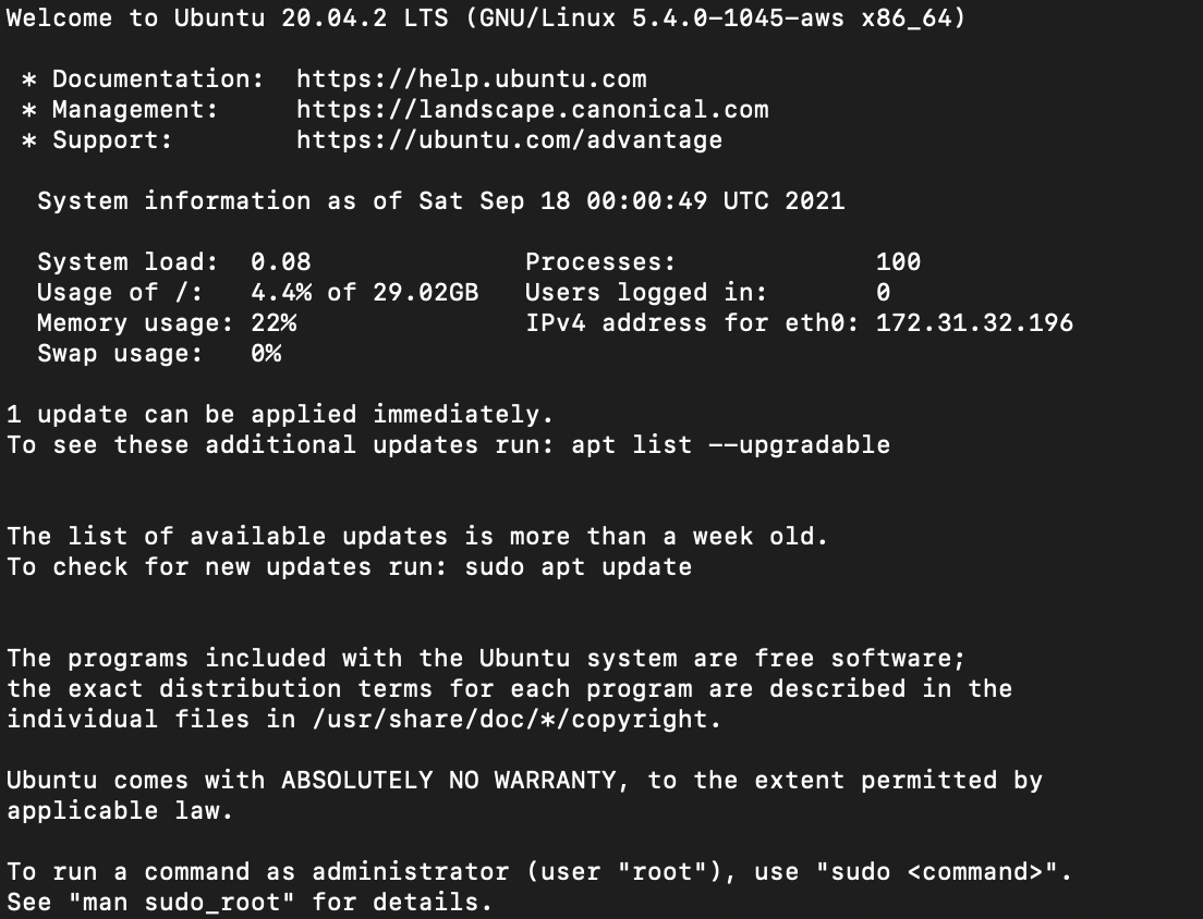 터미널에서 key파일이 있는 디렉토리로 이동 후 AWS 페이지의 인스턴스-연결-SSH 클라이언트에서 복사한 명령어를 실행한다. 페이지에는 key파일의 확장자가 .pem라고 나와있지만 내게 다운받아진 파일 확장자는 .cer이었다. 따라서 커맨드들의 .pem을 .cer로 바꿔 입력해줬다.