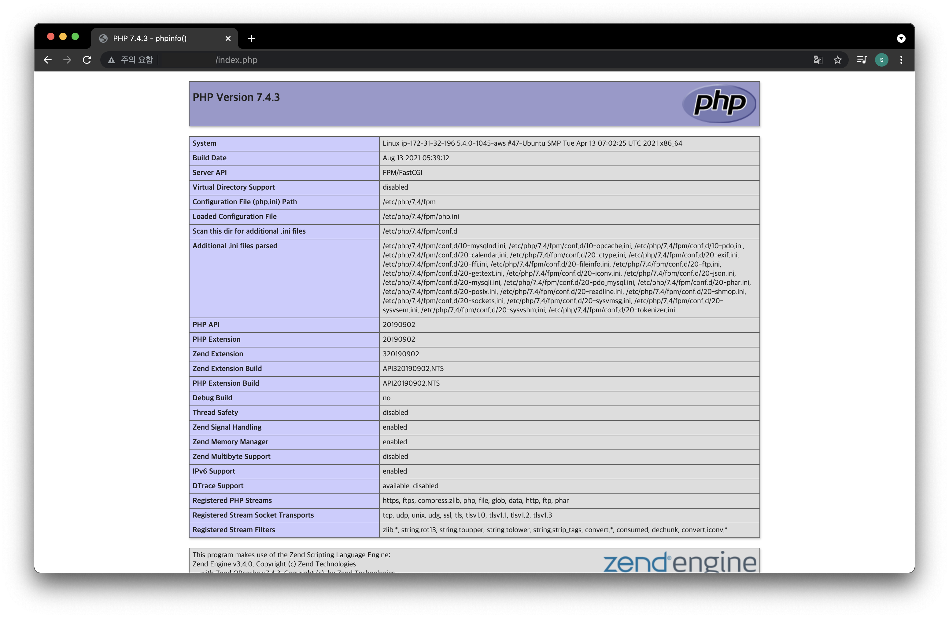 Nginx는 Apache와 달리 자체적인 php 모듈이 없다. 따라서 CGI를 이용해 외부 프로그램과 연결되어 동적 페이지를 제공한다. 이를 위해 Apache를 사용할때와는 달리 php-fpm을 설치해줘야 한다.